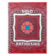 White: Featured in the central square frame and the text "SOLO" and "ENTHUSIAS," white provides a striking contrast against the vibrant red, enhancing readability.