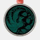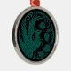 Traditional Teal Blue Phoenix Circle on Black Metal Ornament