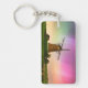 Photo keychain with a traditional windmill under a colorful sky with Northern Lights (aurora borealis) and stars at night in the countryside at Leidschendam in the Netherlands (Europe). It’s very rare for the weather phenomenon to be experienced this far south.