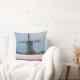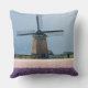 Photo throw pillow cushion with a traditional thatched windmill behind a field full of pink and purple hyacinth flowers on a spring day near Keukenhof gardens in the Bulb Region in Holland.