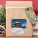 Traditional wooden cabins in de snow square sticker