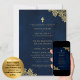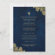 Navy blue gold lace look art design with a gold cross, classic elegant arch frame design with parents names and scripture (can be edited) by LeahG.