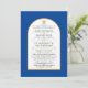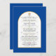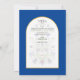 Pretty folk art style flowers, Royal Blue floral theme ideal for any season featuring shades of red, peach (coral) dusty blue grey and green with a gold cross, classic elegant arch frame design with parents names and scripture (can be edited) by LeahG.