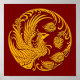 Traditional Yellow Phoenix Circle on Red Poster