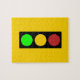 Jigsaw Puzzle wall art print, casual fun home and office furnishing decor accessory printed with Traffic Light Ahead Caution Road Sign artwork design illustration by TheFabricSeal at Zazzle #ZazzleMade https://www.zazzle.com/store/thefabricseal