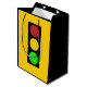 Stop red light, yellow cation yield light, go green with brilliant colourful vivid yellow background colour.