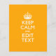 Your personalised Keep Calm saying on a fine custom yellow accent colour style decor. A personalised Keep Calm style saying on a one of a kind gift. Humourous or whimsical try on your creative words on two editable lines of text. Remember to use CAPITAL letters for best results.