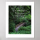 Poster print that features the photographic image of a hiking trail and wooden footbridge leading into a deep forest along with an inspiring quote by naturalist John Muir that reads, "And into the forest I go to lose my mind and find my soul." Frame options available.