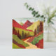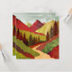 An abstract landscape with unique textures showing a mountain landscape with a hiking trail and trees and beautiful sunrays in shades of red, crimson, yellow, and green.