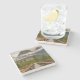 The coasters are gorgeous, a quality feel and heavy weight. They look like a precious archeological find. A rustic stone juxtaposed with a modern floral black and white print. I like the way the print goes slightly imperfect on the cut stone edges giving them a kind-of natural beauty.