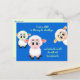 Little lambs, on blue postcard with custom text. Use as an invitation to Sunday School, or any reason, as all text can be deleted or changed. Christian scripture on the front is from the book of Proverbs and reads, "Train a child in the way he should go, and when he is old he will not turn from it.” Colour is bright blue with three lambs on the front. A personal message, or invitation, can be added to the back.