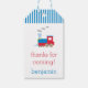 All aboard! Have a fun train themed birthday party with this bright and cheerful gift tag. Engineer stripes featured as the base pattern. Perfect for attaching to party goodie bags. Coordinates with the entire Train Birthday Party Collection.