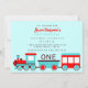 Train Birthday Party Red and Blue Invitation
