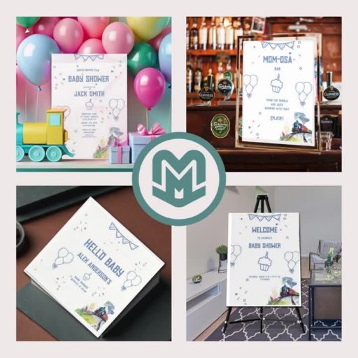 Train Blue Balloons Boy Whimsical Baby ShowerDesigned by Max Marshall