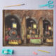 Unused bedroom fireplace inspired by Leonardo David is red chalk drawings. Absolutely so proud and the overall result total success Magical at night so warm and comforting. Slight differences in depth of colour between sheets but perfectly acceptable as it is bespoke printing.Thrilled.