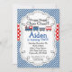 Train Engine, Blue Stripes Red Polka Dot Birthday Invitation