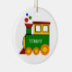 Train Engine Ceramic Ornament with customisable background colour and text.