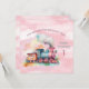 The cutest watercolor train engine inviting friends to a young girl's birthday party. This is the flat card version of this invitation, I have also made a postcard invitation replicating this one.
