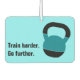 The Fitness Personal Trainer Train Harder, Go Further - Electric Blue air freshener featuring the kettlebell symbol is part of the "Electric Blue Fitness Business Cards & Marketing" collection. Customise it with your motto, logo, and fitness studio name.