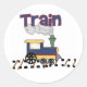 Primary colours train on a track and blue text edged in red that reads "Train" on train T-shirts, mugs, mousepads, tote bags, and other train gear, perfect for the little engineer or conductor!