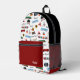 Add a cute train theme to your child's school day with this adorable custom railroad pattern backpack. Bag has trains, train tracks, railroad signs, and gates. Add the first name of your little kid for a personal touch. The Choo Choo text is also editable.