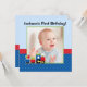 Celebrate your little boy's first birthday with this cute train birthday photo invitation. Featuring a choo choo train, balloons, present and polka dots. Shown in blue, red and green. Easily personalise with your party information and child's photo. THE SAMPLE PHOTO IS NOT INCLUDED. REPLACE WITH YOUR OWN PHOTO BEFORE ORDERING.