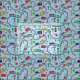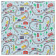Trains Cars Bus Road Railroad Track on pale blue Fabric