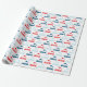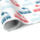 Train wrapping paper featuring red, light blue, and navy blue trains.