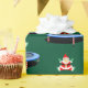 Fun trampoline gymnastics Christmas holiday gift wrap or creative party decoration featuring cute Mrs. Claus jumping on trampoline.