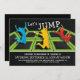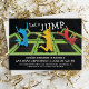 A black backdrop, trampoline courts, kids jumping and flying through the air and simple clean white wording.