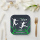 Green and grey trampoline park 10th birthday party paper plates. Personalise it with your event details. Great for kids party.