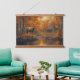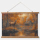Enhance your home with this breathtaking 36"x26" wood-topped wall tapestry, featuring a serene autumnal forest scene. A majestic deer stands gracefully near a reflective body of water, framed by vibrant fall foliage in shades of orange, yellow, and red. A rustic cabin nestled among the trees adds a cosy charm, with smoke rising gently from its chimney. The open wooden frame and crisp print bring this tranquil landscape to life, making it a captivating centerpiece for any room.