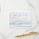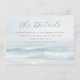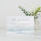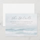 This enclosure card features a serene beach scene with gentle waves and a soft blue and white colour palette, creating a calming oceanic atmosphere. The design includes elegant script typography for the title "The Details" and classic serif fonts for additional information, providing a sophisticated yet readable layout. The tranquil mood is enhanced by the realistic yet stylised representation of the seascape, making it perfect for weddings or special occasions that celebrate relaxation and natural beauty.