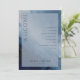 This elegant wedding program features a serene watercolor design with soft blue tones and subtle gold accents, creating a tranquil and sophisticated atmosphere. The layout is balanced, with the word "WELCOME" prominently displayed vertically on the left in bold serif font, while the right side lists ceremony details in clean, organized sans-serif typography. The overall style is formal yet inviting, perfect for celebrating a special occasion with an ethereal touch.