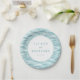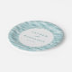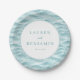 This elegant wedding plate features a serene ocean wave design in soft blues and teals, creating a calming coastal theme. The central white circle highlights customizable names and date in sophisticated serif typography, perfect for personalizing your special day. Ideal for beach-themed weddings or any celebration by the sea, this plate combines modern aesthetics with classic elegance to set a tranquil and festive mood.
