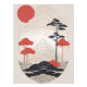 This serene Japanese garden print features a koi pond with vibrant fish, a traditional wooden bridge, and lush greenery. The soft hues and delicate brushstrokes create a sense of tranquillity and peace, making it a perfect addition to any home or office.