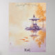 A serene, minimalistic depiction of a koi pond with a stone pagoda. This zen-inspired wall art brings peace and balance to any room, ideal for creating a relaxing environment for meditation or quiet reflection
