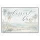 This wedding tabletop sign features a serene beach scene with palm trees and a calm ocean, creating a tranquil tropical ambiance. The design uses a soft pastel colour palette of blues, greens, and beiges, rendered in a watercolor style that adds an ethereal quality to the artwork. Elegant cursive typography highlights the "dessert bar" text, inviting guests to indulge, while a simple sans-serif font provides clear direction with "PLEASE TAKE A TREAT!" Perfect for adding a touch of relaxation and elegance to your event, this sign is ideal for celebrating special moments with sweet treats.