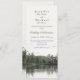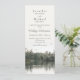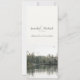 This lakeside evergreens slender vertical rustic wedding invitation card features a peaceful scene at the bottom third of the card composed of distant evergreens and rock structures reflected on the surface of a calm, lightly rippled body of water under an overcast sky from the point of view of a paddler sitting in their kayak on the water, and two eagles or ospreys can be seen flying above in the distance - customise your celebration details on the top portion of the card | the lakeside image has the look of an antique photograph with sepia toning | part of the Mountain Lake Rustic Wedding Collection by katz_d_zynes >> https://www.zazzle.com/collections/119499271518309609