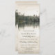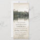 This rustic, outdoorsy wedding invitation card features a peaceful scene composed of distant evergreens and rock structures reflected on the surface of a calm, lightly rippled body of water under an overcast sky from the point of view of a paddler sitting in a kayak on the water, and two eagles or ospreys can be seen flying in the distance | image has the look of an old photograph | part of the Mountain Lake Rustic Wedding Collection by katz_d_zynes >> https://www.zazzle.com/collections/119499271518309609