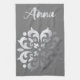 Name monogram in gray and tranquil silver design for a clutter-free environment.