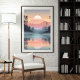 Immerse yourself in the peaceful beauty of this dreamy sunset scene. The soft pastel sky, misty mountains, and perfect lake reflection create a calming atmosphere that brings serenity to any space. Ideal for wall art, posters, or digital backgrounds, this design captures the quiet magic of nature at dusk.