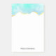 Sticky notes with a serene summery design. Turquoise / aqua green watercolor image with a wavy faux gold border. Elegant and lovely.