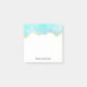Sticky notes with a serene summery design. Turquoise / aqua green watercolor image with a wavy faux gold border. Elegant and lovely.