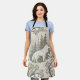 This serene winter forest apron features a majestic white wolf at its centre, surrounded by snow-dusted trees in soft tones of cream, brown, grey, and pale blue. A second wolf is subtly nestled in the lower corner, hinting at unseen life within the quiet woodland. With a mix of bare-branched and evergreen trees, framed by delicate decorative elements, this design evokes natural beauty, stillness, and a touch of winter magic. Perfect for nature lovers, animal enthusiasts, and seasonal or fantasy-themed settings.