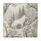 This serene winter forest ceramic tile features a majestic white wolf at its centre, surrounded by snow-dusted trees in soft tones of cream, brown, grey, and pale blue. A second wolf is subtly nestled in the lower corner, hinting at unseen life within the quiet woodland. With a mix of bare-branched and evergreen trees, framed by delicate decorative elements, this design evokes natural beauty, stillness, and a touch of winter magic. Perfect for nature lovers, animal enthusiasts, and seasonal or fantasy-themed settings.