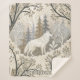 This serene winter forest blanket features a majestic white wolf at its centre, surrounded by snow-dusted trees in soft tones of cream, brown, grey, and pale blue. A second wolf is subtly nestled in the lower corner, hinting at unseen life within the quiet woodland. With a mix of bare-branched and evergreen trees, framed by delicate decorative elements, this design evokes natural beauty, stillness, and a touch of winter magic. Perfect for nature lovers, animal enthusiasts, and seasonal or fantasy-themed settings.