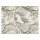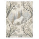 This serene winter forest tablecloth features a majestic white wolf at its centre, surrounded by snow-dusted trees in soft tones of cream, brown, grey, and pale blue. A second wolf is subtly nestled in the lower corner, hinting at unseen life within the quiet woodland. With a mix of bare-branched and evergreen trees, framed by delicate decorative elements, this design evokes natural beauty, stillness, and a touch of winter magic. Perfect for nature lovers, animal enthusiasts, and seasonal or fantasy-themed settings.
