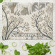 This serene winter forest kitchen towel features a majestic white wolf at its centre, surrounded by snow-dusted trees in soft tones of cream, brown, grey, and pale blue. A second wolf is subtly nestled in the lower corner, hinting at unseen life within the quiet woodland. With a mix of bare-branched and evergreen trees, framed by delicate decorative elements, this design evokes natural beauty, stillness, and a touch of winter magic. Perfect for nature lovers, animal enthusiasts, and seasonal or fantasy-themed settings.