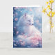 A serene white fox rests peacefully among delicate pink cherry blossoms, its fur blending seamlessly with the soft, dreamy winter landscape. Snowy petals swirl around the fox, creating an enchanting, tranquil scene that embodies a fusion of winter magic and the fleeting beauty of spring. The gentle expression on the fox's face conveys a sense of peace and wonder, making this design perfect for nature lovers, fantasy enthusiasts, and those who appreciate elegant wildlife imagery.
